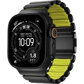 Příslušenství k hodinkám. Spartan Black Titan Volt Apple Watch 45/46/49mm. . Materiál řemínku FKM pryž. Min. obvod zápěstí 13 cm. Max. obvod zápěstí 20 cm. Určení Unisex. Barva Černá/Žlutá. . Kompatibilita. Apple Watch 45 mm. Apple Watch 46 mm. Apple Watch 49 mm