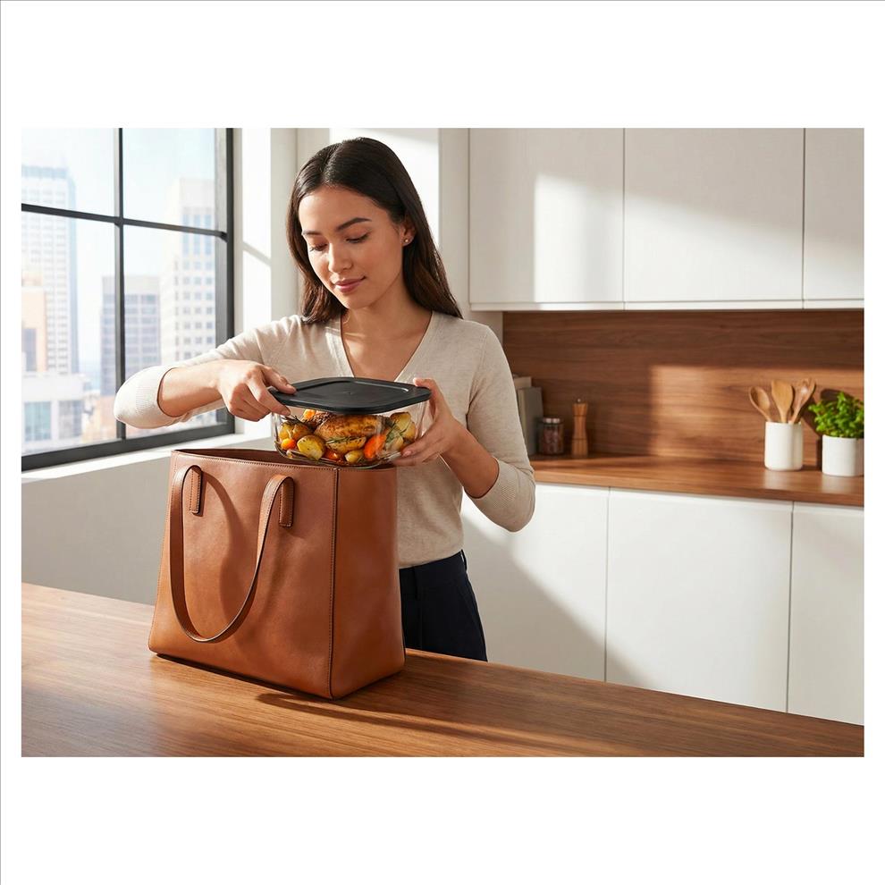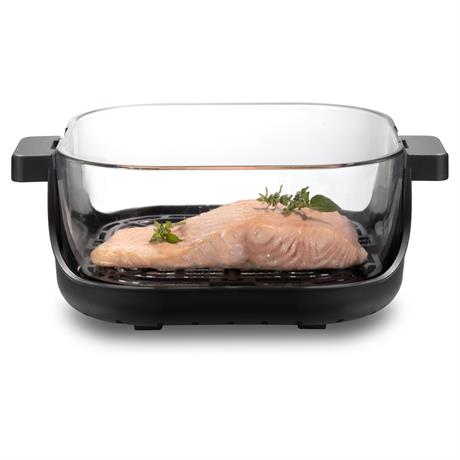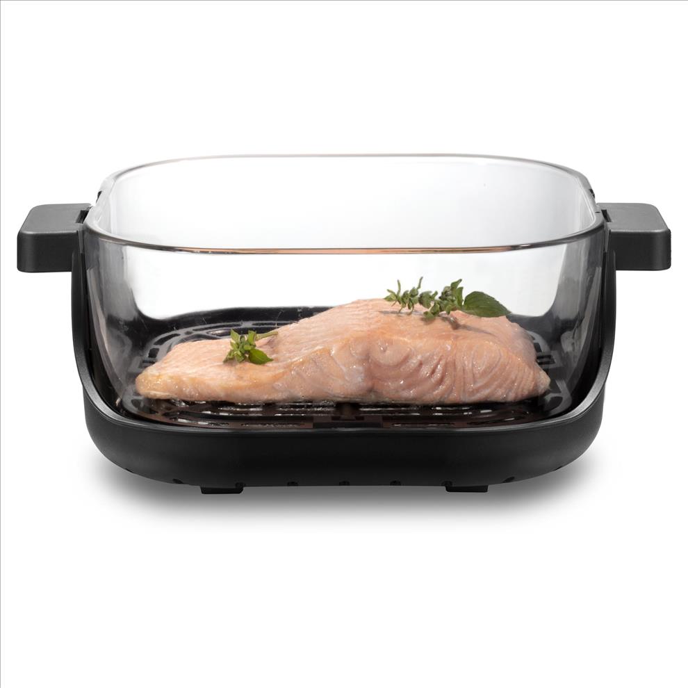Zdravotně nezávadná skleněná nádoba bez povrchové úpravy je bezpečná pro každodenní používání a neabsorbuje pachy ani chutě. Navíc vidíte celý proces přípravy, což dává vaření větší jistotu i radost. Ohřevná jednotka se jednoduše nasadí shora na zvolenou nádobu, vaříte bez složité manipulace a po dokončení jen vezmete nádobu s uchy. Jídlo rovnou servírujete nebo uložíte do lednice. Unikátní Fry&Go systém bez dalšího špinavého nádobí.