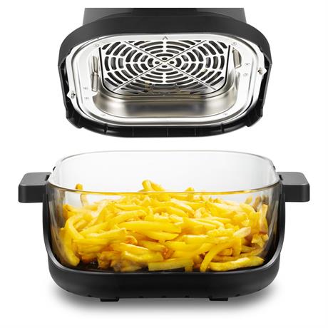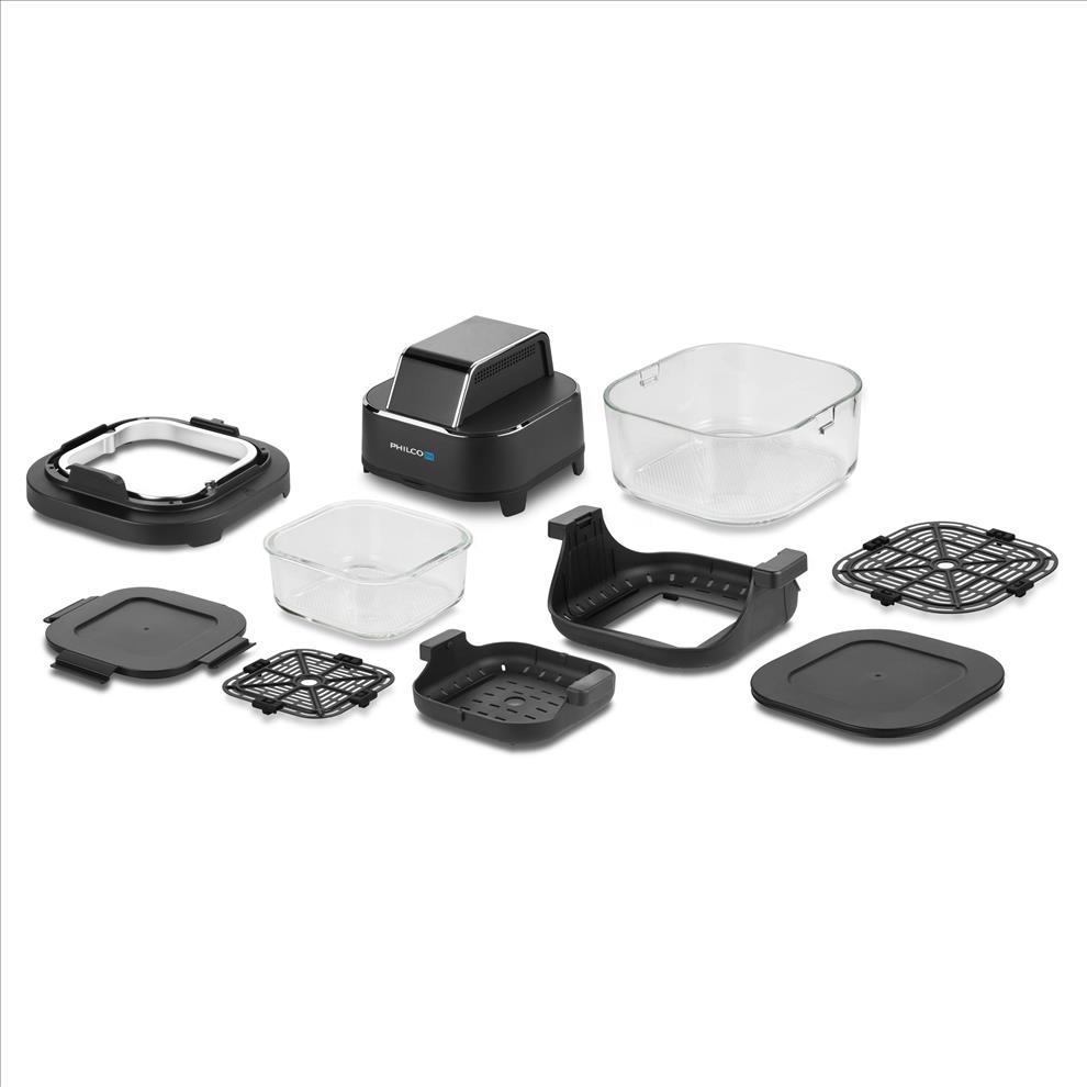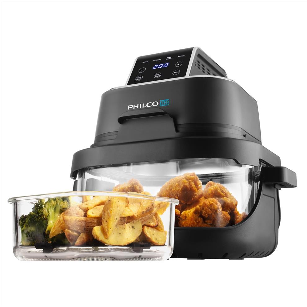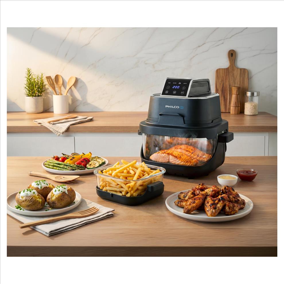 Horkovzdušná fritéza Philco PHAF 2005 Fry&Go vás naučí vařit rychle, chytře a nevyhazovat zbytky. Rozšiřuje naši skleněnou řadu fritéz Glassio pro chytré, přehledné a udržitelné vaření. S odolnou skleněnou nádobou vaříte dlouhodobě bezpečně, bez odírání povrchu nebo přenosu chutí a pachů. Průhled 360° vám umožní sledovat jídlo během přípravy, takže přesně víte, kdy je hotovo a že se nic nepálí. Fritéza má ve výbavě 2 nádoby, velkou s objemem 4 l pro hlavní vaření a malou s objemem 1,5 l na přílohy nebo uschování zbytků na později.