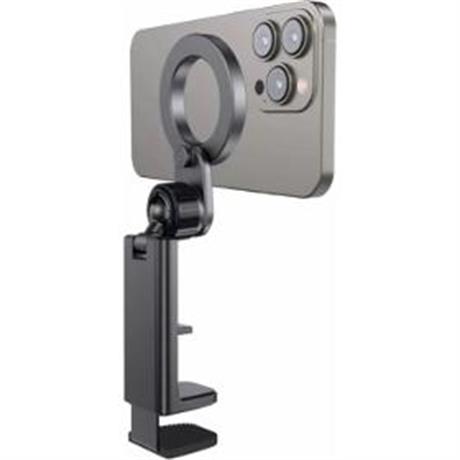 Držák telefonu. Univerzální držák MagSafe. . Kompatibilita: zařízení s podporou MagSafe / telefony s magnetickým kroužkem. Materiál: ABS plast, polykarbonát, silikon, nerezová ocel. Maximální tloušťka uchycení: cca 35 mm. . Rozměry: 9,3 × 6 × 3,5 cm. Hmotnost: 100 g. Barva: Černá