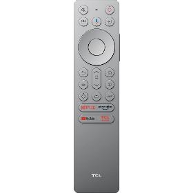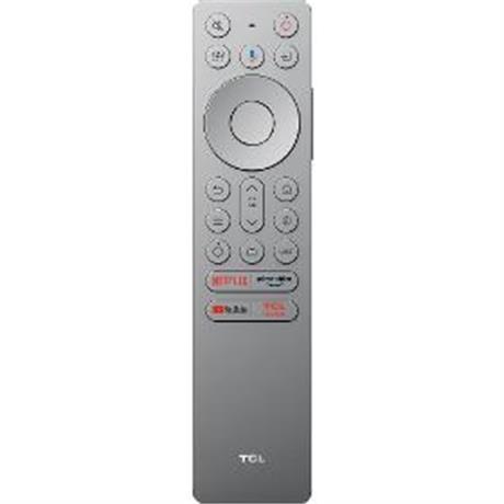 Dálkový ovladač. TCL RC933. . Technologie přenosu Bluetooth. Funkce Integrovaný mikrofon. Ovládání smart TV. Značka televize TCL. Barva stříbrná
