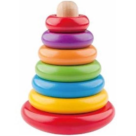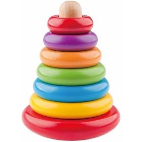 Skládací pyramida. WOODY Skládací pyramida - Káča. . Různobarevné dřevěné kroužky se navlékají na tyčku od největšího k nejmenšímu. Tuto skládací pyramidu můžeš pak roztočit jako káču. Úkolem hračky je rozvíjet dětskou motoriku. . Věk 2+. Rozměry (VxŠxH) 17 x 13 x 13 cm