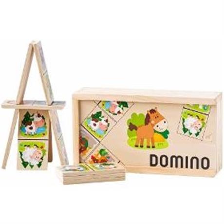 Domino. WOODY Domino Domácí zvířata. . Klasické kameny domina jsou oživeny veselými obrázky domácích zvířátek. Z dílny české kreslířky. Tak, jako u klasického domina, má dítě za úkol řadit vedle sebe obrázky se stejnými zvířátky. Domino je uloženo v dřevěné krabičce. . 28 kusů. . Věk 10m+. Rozměry (VxŠxH) 5 x 10 x 19 cm