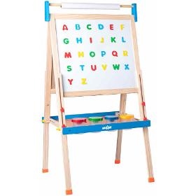 Obsahuje magnetická písmena, bílé křídy, fix, houbičku a kelímky na vodu a barvy