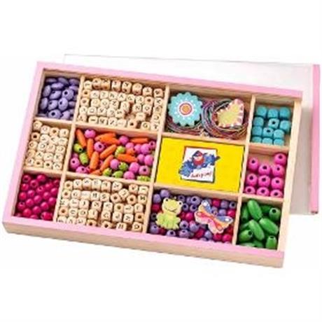 Korálky. WOODY Korálky ABC v krabičce. . Barevné korálky různých tvarů, korálky s motivem ABC, květin, srdíček, zvířátek a šňůrky k navlékání se zapínáním. Vše je umístěno v praktické dřevěné krabičce se zasouvacím víkem z plexiskla. . Věk 3+. Rozměry (VxŠxH) 3 x 29 x 19,2 cm