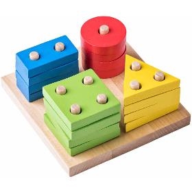 Logická hra. WOODY Základní tvary na desce. . Logická hra pro nejmenší. Úkolem dítěte je, podle tvaru, barvy a počtu kolíků, navléknout a umístit destičku na správné místo. . Obsahuje 16 dílů. . Věk 2+. Rozměry (VxŠxH) 7 x 15 x 15 cm