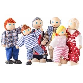 Panenky do domečku. WOODY Panenky do domečku. . Panenky do domečku. Nožičky jsou vyrobené z drátků, což jim umožnuje sedět, klečet i stát na jedné noze. Obsah balení - máma, táta, 2 děti, dědeček a babička. . Věk 3+. Výška dospělé panenky 11 cm
