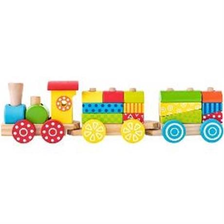 Kostky. WOODY Vláček s potiskem. . Úkolem dítěte je nasunout kostky vlaku na tyčky tak, aby byl naložen celý náklad. Při této činnosti děti zdokonalují jemnou motoriku, logiku a koordinaci pohybů. . Věk 2+. Rozměr 9 x 32,5 cm