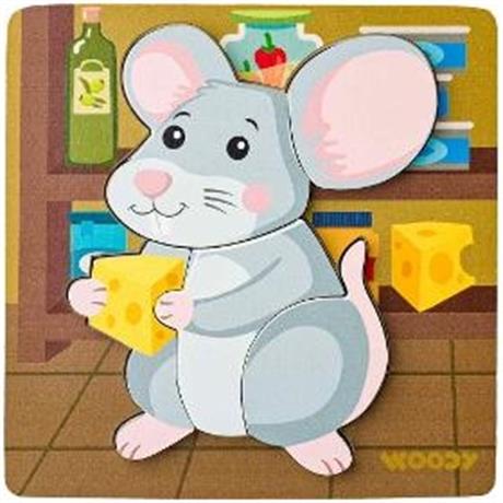 Puzzle. WOODY Puzzle Baby Myška. . Masivní puzzle pro nejmenší děti. Složeno z pěti velkých kousků, které se dají snadno uchopit. Na základně hrací desky vytištěna černobílá kresba. Ta usnadní orientaci a správné poskládání obrázku. Design pochází z dílnyčeského výtvarníka. . Věk 1+. Rozměry (VxŠxH) 15 x 15 x 1,5 cm