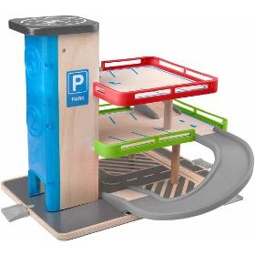 Dřevěná garáž s výtahem je skvělá zábava pro malé motoristy