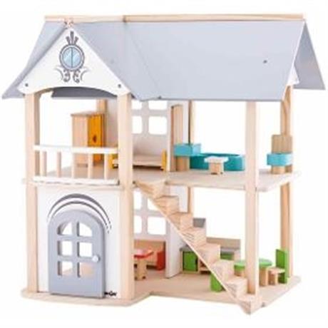 Má magnetický odnímatelný balkon, variabilní schody a funkční dveře na pantech