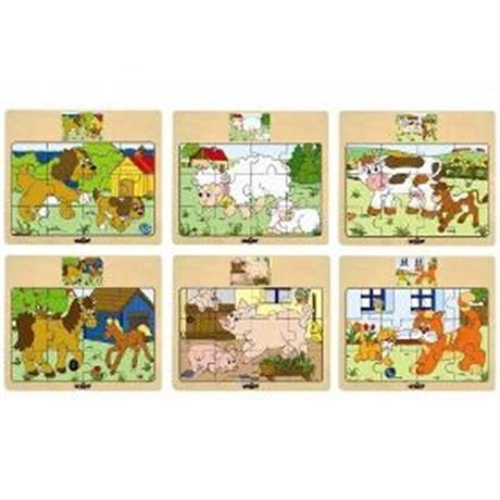 Puzzle. WOODY Puzzle na desce. . Klasické zámkové puzzle umístěné ve dřevěném rámu. Puzzle je navrženo tak, aby se snadno skládalo i malým dětem. Nenaleznete zde např. stejné dílky s plochou trávy či nebe, které jsou pro malé děti špatně identifikovatelné. Na každém dílku je zobrazena část celku nebo alespoň lísteček či šneček tak, aby se dítě snadno orientovalo. . Do poznámky prosím uveďte, o jaký druh máte zájem. . 6 motivů. 12 kostek. . Věk 2+