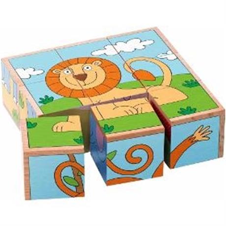 Kostky. WOODY Kubus Exotická zvířata. . Klasický dětský kubus tvořený kostkami. Obrázky pochází z dílny českého výtvarníka. Pro snadnější složení jsou barevně odlišena pozadí jednotlivých obrázků. I tímto je hračka přizpůsobena věku dítěte. . 9 kostek. . Věk 2+. Rozměry 13,5 x 13,5 cm. Velikost kostky 4,5 x 4,5 cm