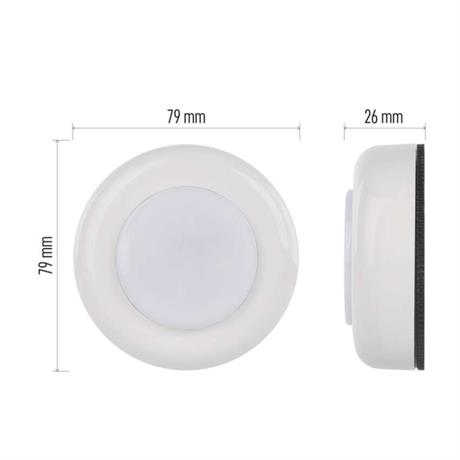 automatické zapnutí/vypnutí: ne|barva světla: teplá bílá|časová prodleva: –|fotosenzor: ne|maximální dosvit: 5 m|maximální světelný tok: 30 lm|max. výstup 1× USB: –|max. výstup celkem: –|napájení: 3× 1,5 V AAA (součástí balení)|natáčení: –|ochrana proti přetížení, přepětí a zkratu: –|počet USB výstupů: –|pohybové čidlo: ne|příkon: –|prodejní obal: 10 ks, display box|režim svícení: on/off|rozměr: 79 × 26 mm|vypínač: ano|zdroj světla: 4× LED