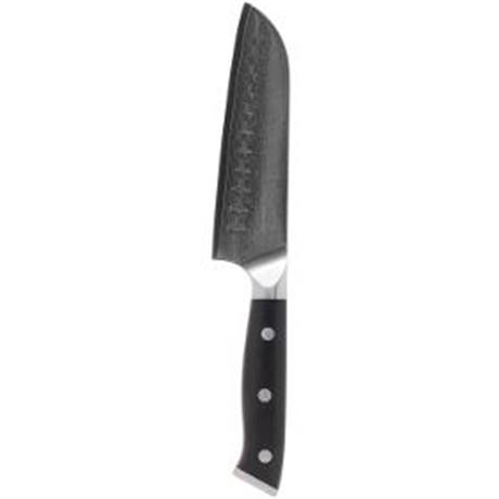 Santoku nůž. KOHERSEN 72214 Nůž Santoku Elegance 12,7 cm. . Profesionální nůž. Damašková ocel. Rukojeť z kvalitního afrického ebenového dřeva. Z kolekce Elegance Ebony Wood. Vyroben s mimořádnou přesností a důrazem na detail. Drážky čepele nože zabraňují přilepení surovin. . Určen na:. Přesnou práci v kuchyni. Jemné krájení. Řezání na malé kousky. . Hmotnost 121 g. Barva černá