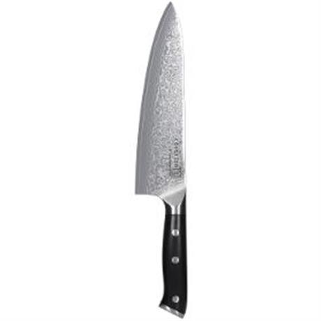 Nůž Chef. KOHERSEN 72215 Nůž Chef Elegance 21,6 cm. . Profesionální kuchařský nůž. Damašková ocel. Rukojeť z kvalitního afrického ebenového dřeva. Z kolekce Elegance Ebony Wood. Vyroben s mimořádnou přesností a důrazem na detail. . Určen na:. Krájení. Sekání. Porcování masa, ryb, zeleniny, ovoce a bylinek. . Hmotnost 245 g. Barva černá