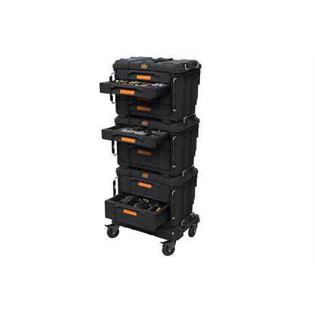 Box Keter ROC Pro Gear 2.0 je součástí pokročilého modulárního systému. Kombinace kompatibility, odolnosti a chytrého uspořádání z něj dělá ideálního pomocníka nejen do dílny, ale i na stavbu. Je plně kompatibilní s řadami Pro Gear 1.0 a 2.0, takže jej snadno začleníte do existující výbavy.
