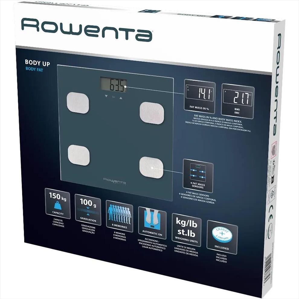 Robustní konstrukce s nosností až 150 kg a přesností na 100 g umožňuje podrobně sledovat každý pokrok. Skleněná platforma v mimořádně tenkém provedení působí elegantně a zaručuje snadnou údržbu. Váha se spustí automaticky po našlápnutí, přičemž přehledný LCD displej je dobře čitelný i z výšky. Součástí balení je lithium-iontová baterii CR3032 pro okamžité používání. S váhou Rowenta Body Up BR2520V0 získáte přesný a spolehlivý nástroj pro pravidelné sledování výsledků, které vás budou motivovat k dalším krokům na cestě za lepší kondicí.
