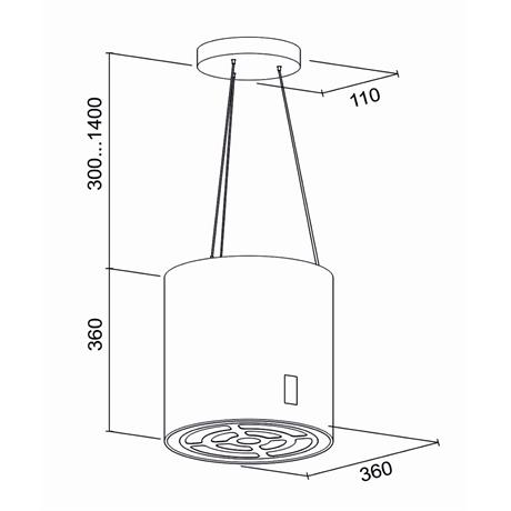 Max. výkon 668 m3/hod• energetická třída A• ovládací panel s tlačítky• ECO úsporný motor• nízká hlučnost od 45/64 v režimu turbo dBA• energetický štítek A/A/E• nastavitelná výška zavěšení 66 - 176 cm• rozměry (VxHxŠ): 66-176x36 cm