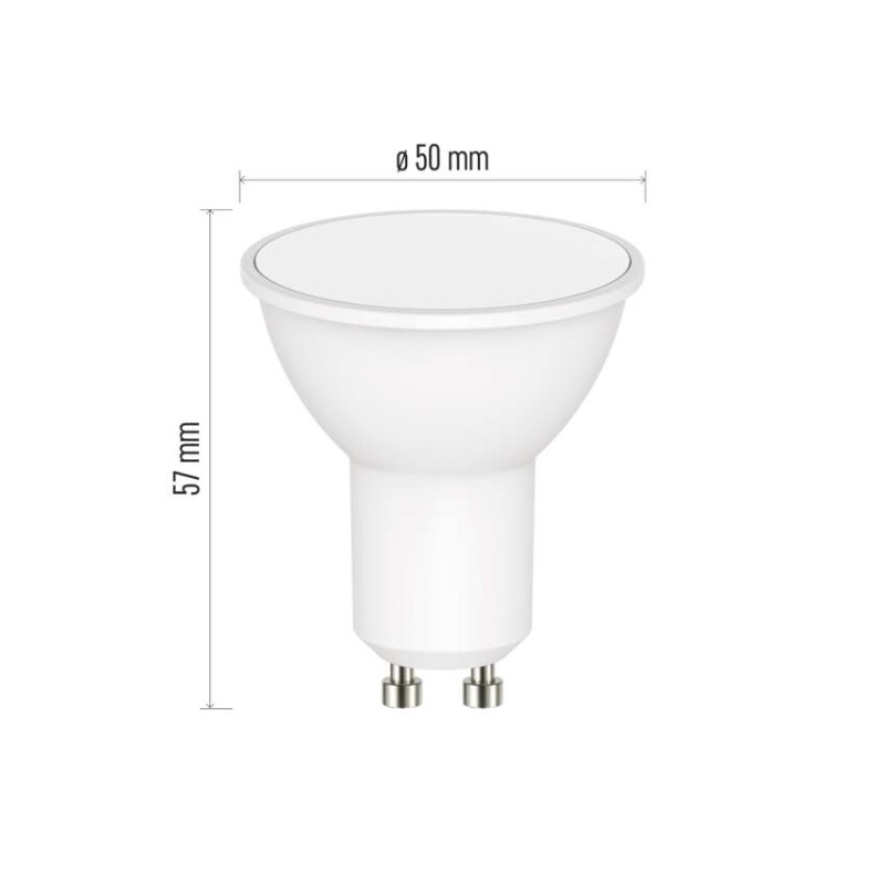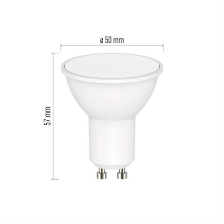 barva světla: RGB|energetická třída: G|index podání barev (CRI): 80|kompatibilita: EMOS GoSmart, TUYA, LIDL, Smartlife|náhrada za žárovku: 35 W|napětí: 230 V~/50 Hz|notifikace do mobilní aplikace: ano|ovládání hlasovými asistenty: ano (Amazon Alexa, Google Assistant)|patice (uchycení žárovky): GU10|počet čipů: neuvádí se|počet spínacích cyklů: 15 000|podporované OS: Android, iOS|přenosová frekvence: 2,4 GHz WIFI|příkon: 4,8 W|prodejní obal: 1 ks, krabička|protokol: Wi-Fi|řada: GoSmart|rozměr: 50 × 50 × 56,5 mm|stmívatelná: ano|světelná účinnost: 83 lm/W|světelný tok: 400 lm|technologie: LED|teplota chromatičnosti: 2 700–6 500 K|tvar: MR16|typ čipů: SMD|účiník: 0,48|úhel vyzařování: 120°|záruční doba: 2 roky|životnost: 20 000 hodin