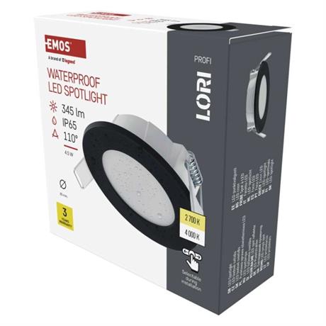 EMOS LED bodové svítidlo LORI 4,5W 345LM IP65 CCT černá