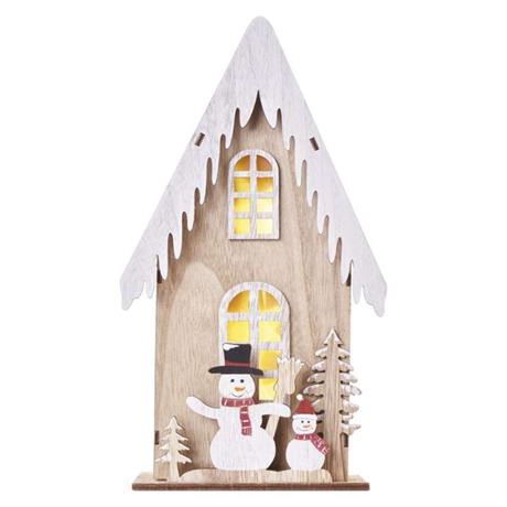 Dřevěné dekorace navozují atmosféru tradičních Vánoc charakteristických vůní perníčků, zvukem vánočních koled a nezaměnitelnou chutí bramborového salátu. Dřevěná dekorace "domek se sněhuláky" je vybavena příjemným teple bílým osvětlením. Díky napájení pomocí AA baterií ji můžete umístit na libovolné místo ve vašem interiéru a skvěle se bude vyjímat zejména na okenním parapetu, komodě či televizním stolku.