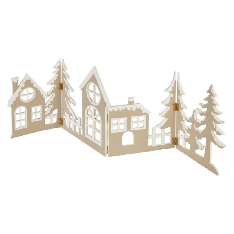 EMOS LED dekorace dřevěná - vesnička, 60 cm, 2x AA, teplá bílá, časovač