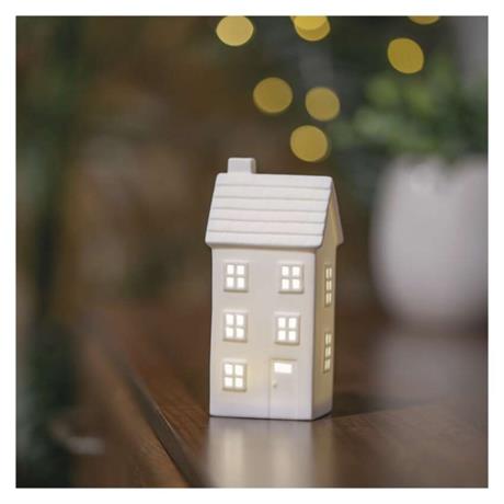 Vneste do svého interiéru kouzlo zimní pohádky. Tento elegantní keramický domeček s jemným LED osvětlením v teplé bílé barvě okamžitě navodí klidnou a hřejivou atmosféru - jako byste právě nahlédli do okna zasněženého vánočního příběhu.