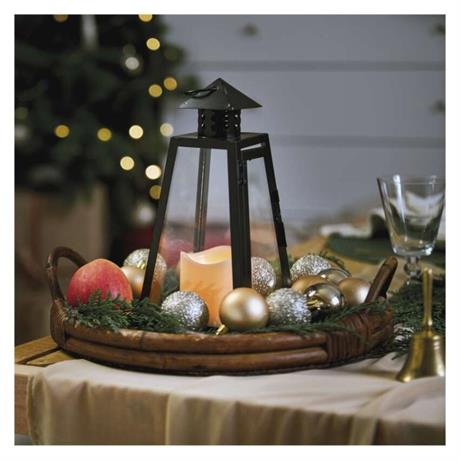 Jen máloco dokáže navodit tak příjemnou atmosféru jako lucerničky a jejich decentní světlo teplé bílé barvy (tzv. vintage). Černá vánoční lucerna se svíčkou je krásnou dekorací, kterou můžete postavit na sváteční stůl, parapet, skříňku či poličku. Využijete ji nejen během vánočních večerů, ale váš domov i zahradu ozdobí celoročně a promění se v dokonalý doplněk na oslavu či svatbu. A co je důležité – nechtěných požárů se bát rozhodně nemusíte! Jako zdroj světla využívá místo tradičních svíček energeticky úsporné LED diody napájené z baterií typu AAA.