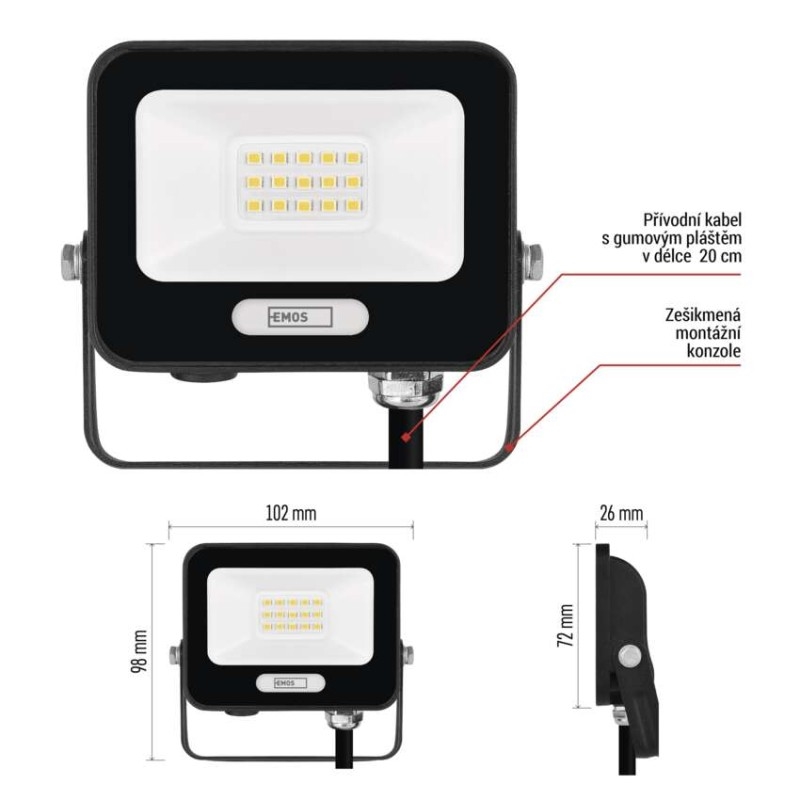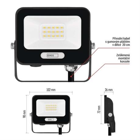 EMOS LED reflektor GLARO 10W, černý, IP65, 1000 lm, neutrální bílá