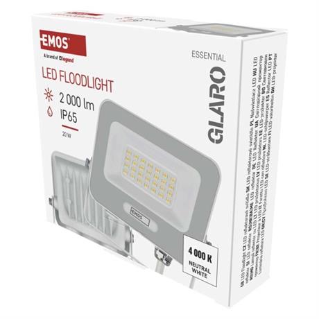 EMOS LED reflektor GLARO 20W, bílý, IP65, 2000 lm, neutrální bílá