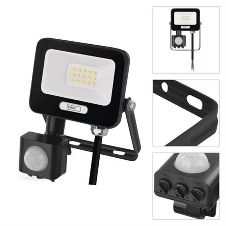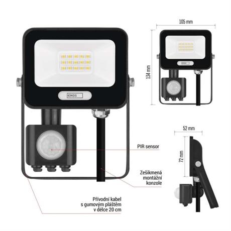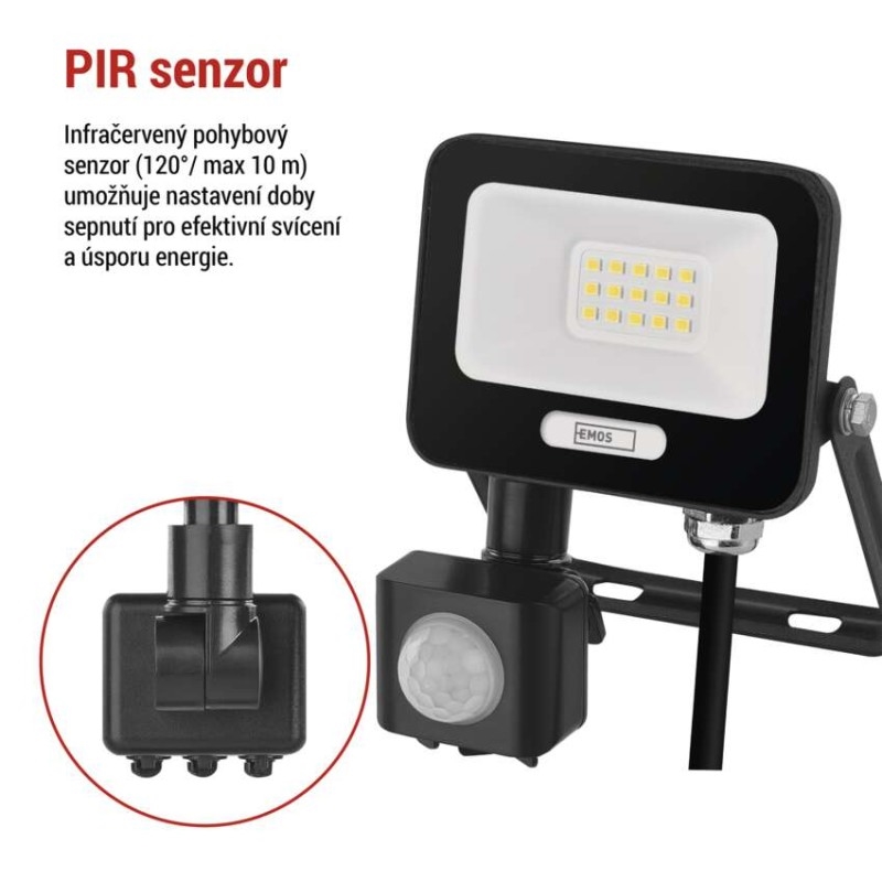 EMOS LED reflektor GLARO s pohybovým čidlem, 10 W, černý, IP54, 1000 lm, neutrální bílá