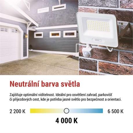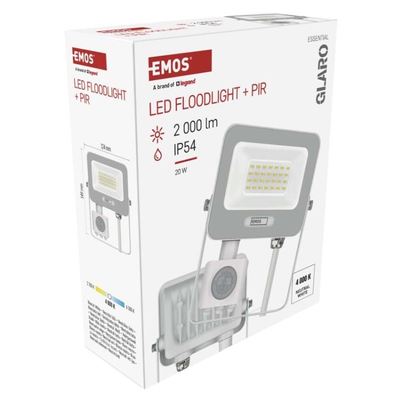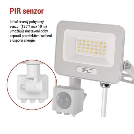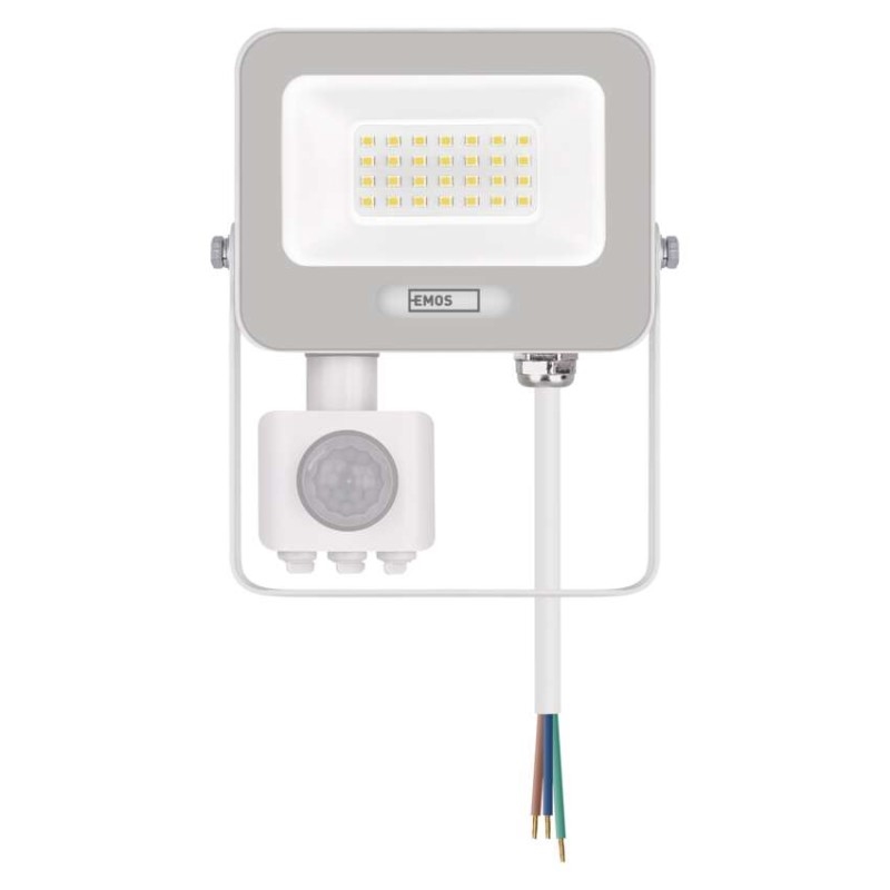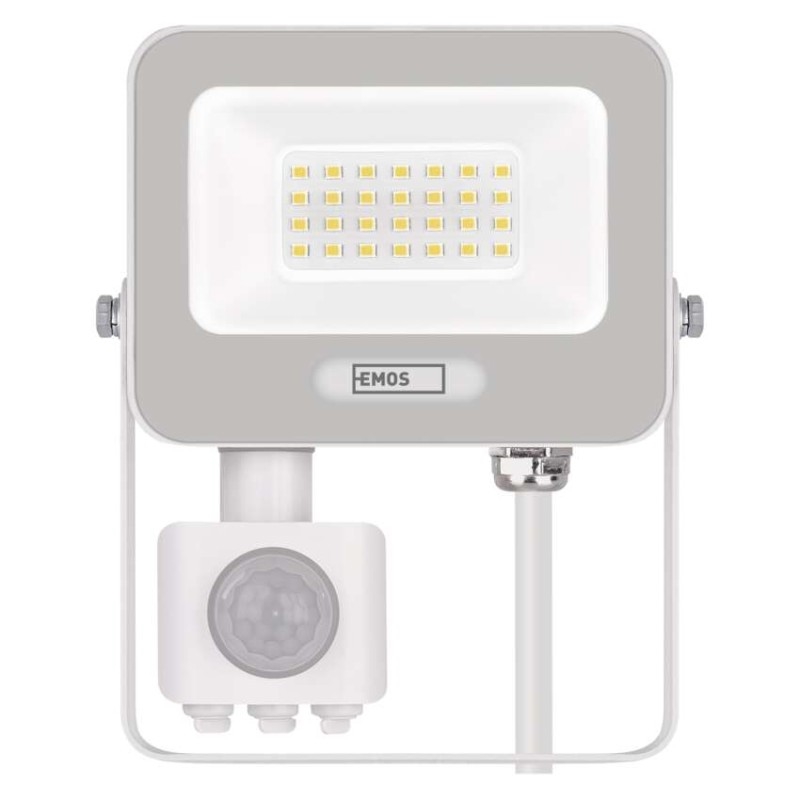 EMOS LED reflektor GLARO s pohybovým čidlem, 20 W, bílý, IP54, 2000 lm, neutrální bílá