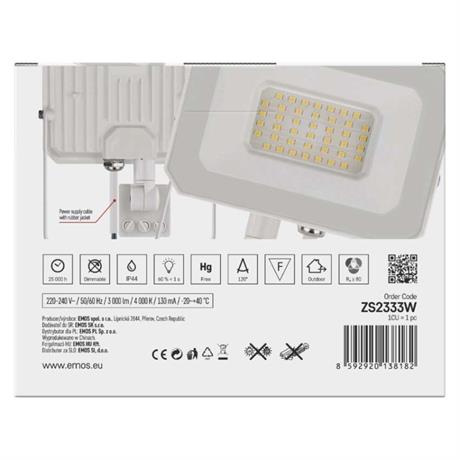EMOS LED reflektor SIMPO, 30W, PIR, neutrální bílá