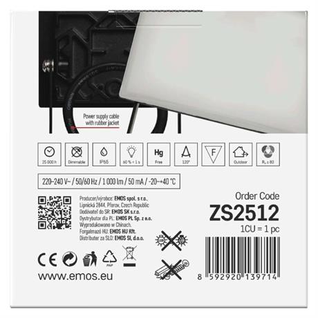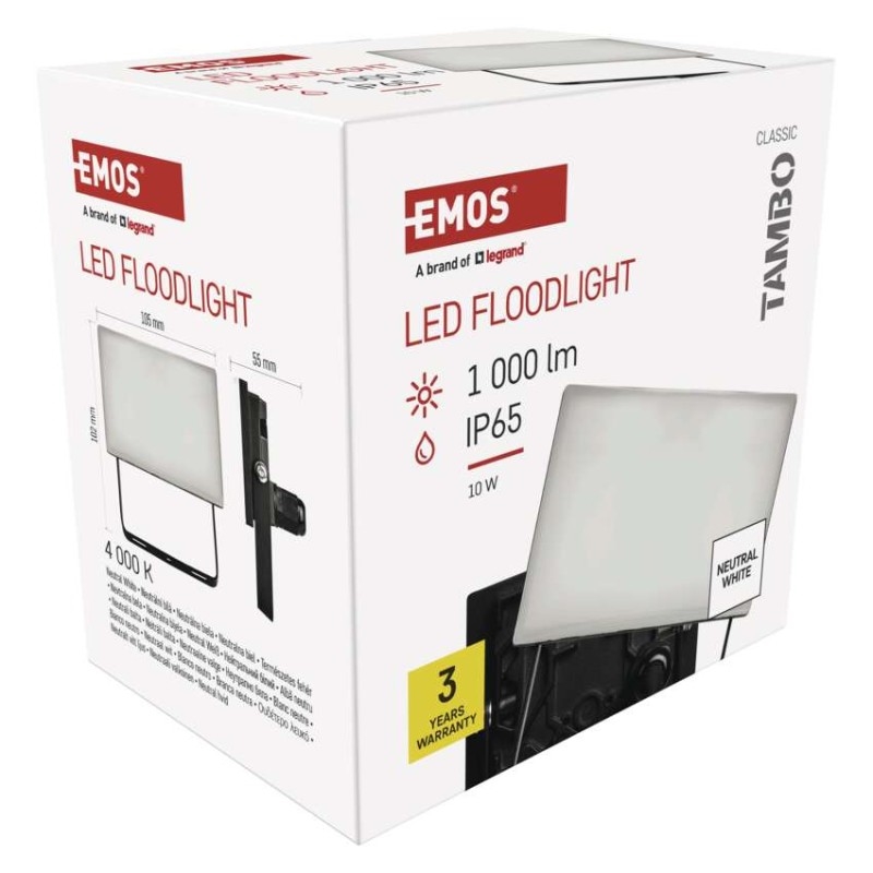 EMOS LED reflektor TAMBO, 10 W, 1000l m, IP65, černý