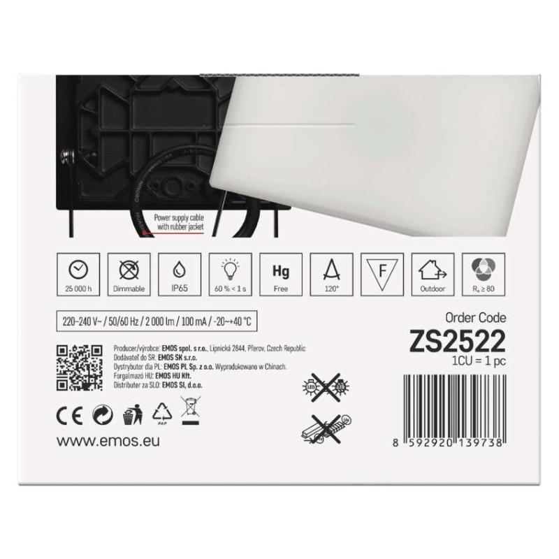EMOS LED reflektor TAMBO, 20 W, 2000l m, IP65, černý