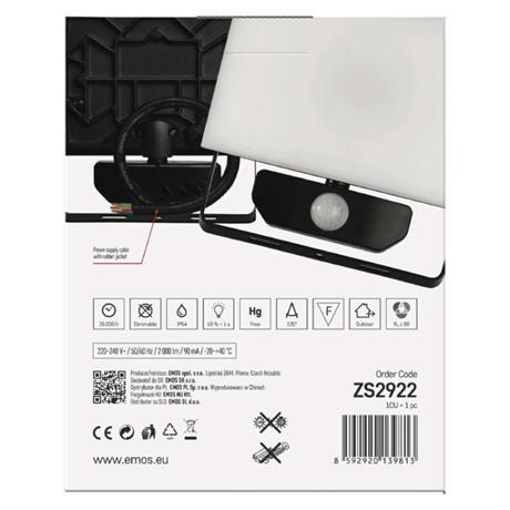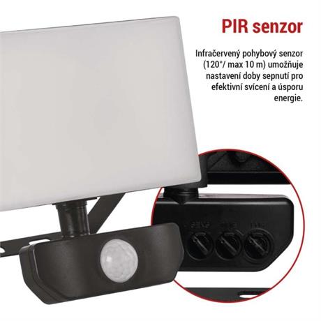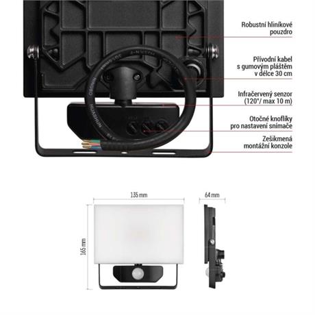EMOS LED reflektor TAMBO se senzorem pohybu, 20 W, 2000 lm, černý