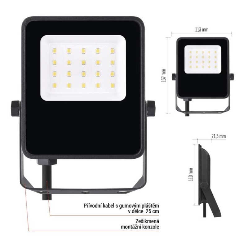 EMOS LED reflektor VISIO, 10 W, černý, neutrální bílá