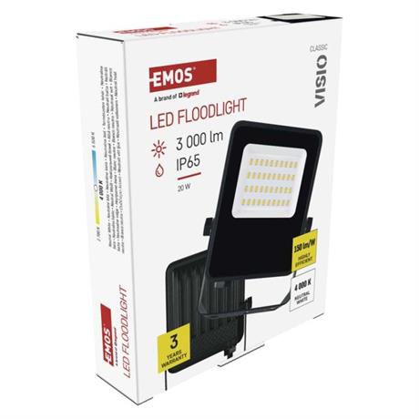 EMOS LED reflektor VISIO, 20 W, černý, neutrální bílá