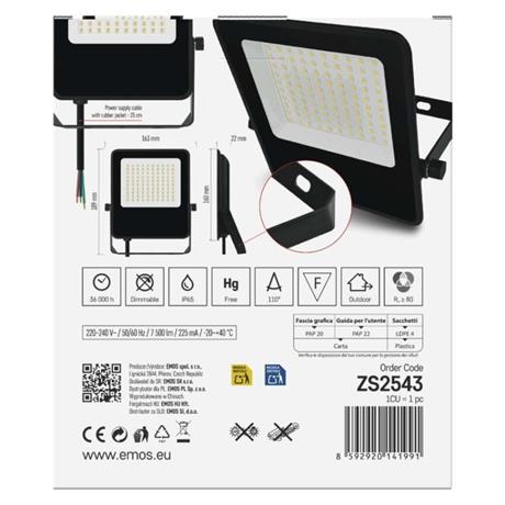 EMOS LED reflektor VISIO, 50 W, černý, neutrální bílá