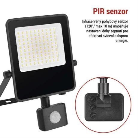 EMOS LED reflektor VISIO s pohybovým čidlem, 50 W, černý, neutrální bílá