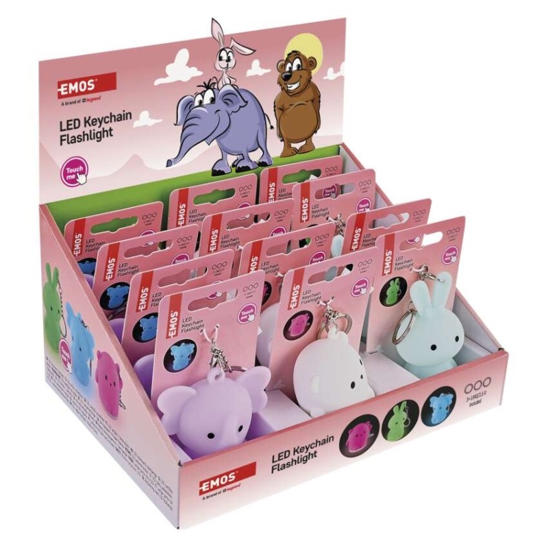 EMOS LED silikonová klíčenka - zvířátka, 12 ks, display box