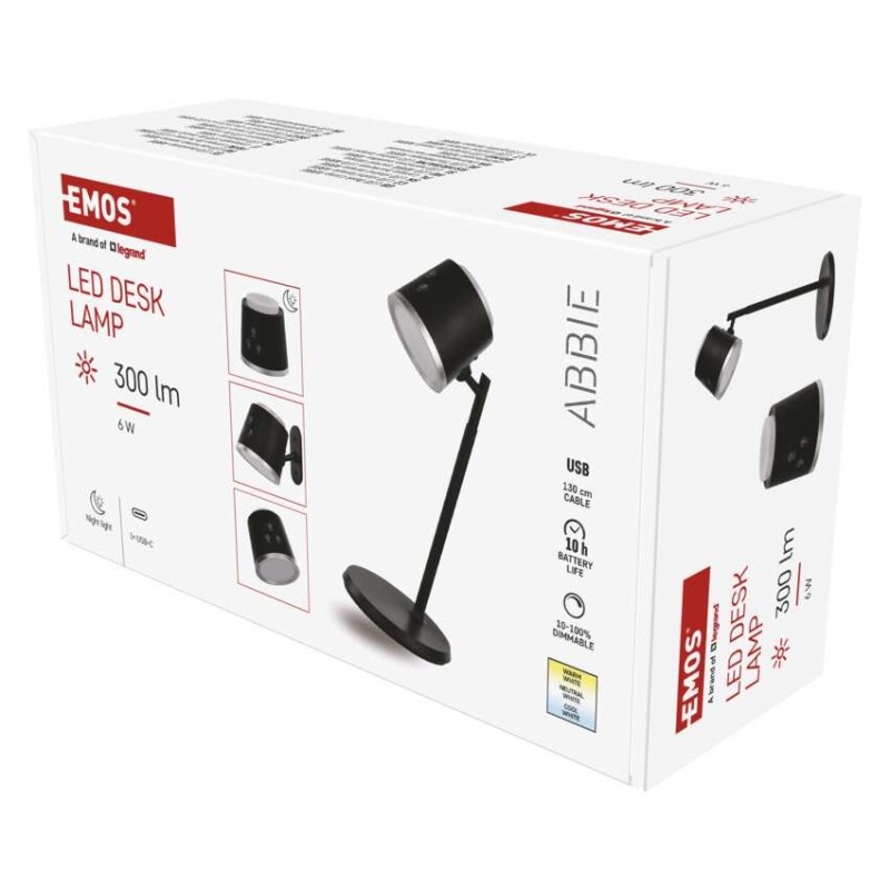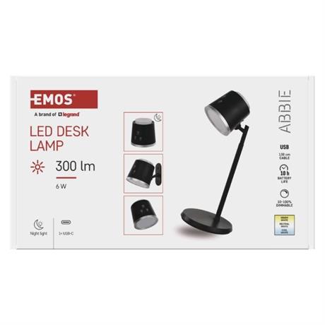 EMOS LED stolní lampa ABBIE nabíjecí, černá