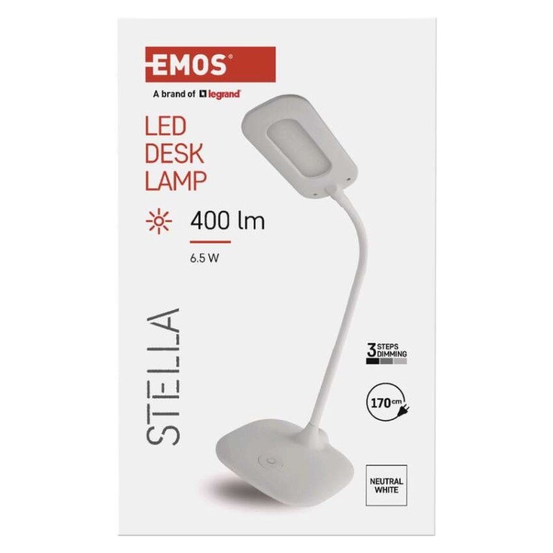 barva: bílá|barva světla: neutrální bílá|činitel stárnutí: neuvádí se|čip LED: SMD|délka přívodního kabelu: 1,7 m|energetická třída: A+|energetická třída (od 1.9.2021): neuvádí se|index podání barev (CRI): Ra >80|integrovaná nabíjecí baterie: ne|krytí: IP20|materiál: kov, plast + guma|max. výkon: 6,5 W|napájecí zdroj: 12 V/400 mA|napájecí zdroj součástí balení: ano|napětí: 100–240 V|obsah rtuti: <0 mg|patice (uchycení žárovky): neuvádí se|počet LED: 12|počet spínacích cyklů: 15 000|příkon: 6,5 W|prodejní obal: 1 ks, krabice|rozměr: 160 × 550 × 345 mm|rychlost náběhu na 100 %: 0 s|stmívání: ano|světelný tok: 400 lm|teplota chromatičnosti: 4 000 K|typ napájení: síť|účiník: neuvádí se|USB port: ne|životnost: 30 000 hodin