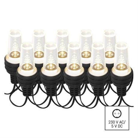 barva drátu: černá|barva světla: studená bílá|časovač: ne|dálkový ovladač: ne|délka přívodu: 5 m|krytí: IP44|materiál: plast|počet LED: 10|použití: venkovní i vnitřní|příkon: 5 W|prodejní obal: 1 ks, krabice|produkt: girlanda|rozměr: 4,5 m|typ napájení: síťový adaptér|vstupní napětí: 230 V AC|výstupní napětí: 5 V DC|záruční doba: 2 roky|zdroj svícení: LED|životnost: 10 000 hodin