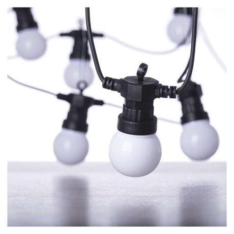 Venkovní světelný řetěz s párty žárovkami svítícími teplou bílou barvou doladí útulnou atmosféru při posezení na balkoně, terase, venkovních oslavách, svatbách, kulturních akcích apod. Při správně zvoleném počtu řetězů a žárovek dokáže asistovat tradičnímu osvětlení a udělá tak každý den výjimečným. Stále častěji je tento typ řetězu využíván jako stylové osvětlení na zahrádkách či v interiérech restaurací, kde vkusně ozdobí i jinak obyčejný prostor. Díky dlouhému napájecímu kabelu o délce 5 m je jeho zapojení do elektrické sítě hračkou.