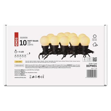 EMOS LED světelný řetěz – 10x párty žárovky mléčné, 5 m, venkovní i vnitřní, teplá bílá