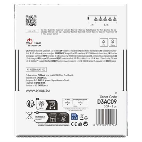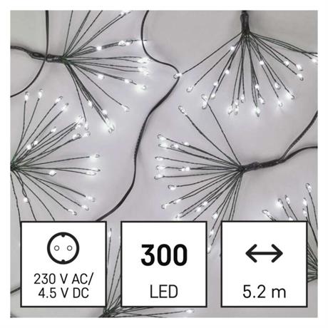 barva drátu: zelená|barva světla: studená bílá|časovač: ano|dálkový ovladač: ne|délka přívodu: 3 m|funkce: svítí|krytí: IP20|LED mezera: neuvádí se|materiál: kov|možnost propojení: ne|počet LED: 300|použití: vnitřní|příkon: 4,5 W|prodejní obal: 1 ks, krabice|produkt: nano řetěz|pro výšku stromu: neuvádí se|rozměr: 5,2 m|tvar: nano|typ napájení: síťový adaptér|velikost LED: 3 mm (nano)|vstupní napětí: 230 V AC|výstupní napětí: 4,5 V DC|záruční doba: 2 roky|životnost: 10 000 hodin