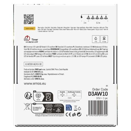 Tento typ řetězu je určen výhradně pro vnitřní použití (IP20) a disponuje funkcí časovače, který je integrovaný přímo do napájecího zdroje. Při jeho aktivaci se řetěz rozsvítí na 6 hodin, poté zhasne a po 18 h se rozsvítí znovu. Vybírat můžete z více barev provedení napájecího kabelu, počtu LED, délek i barev světla.