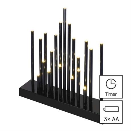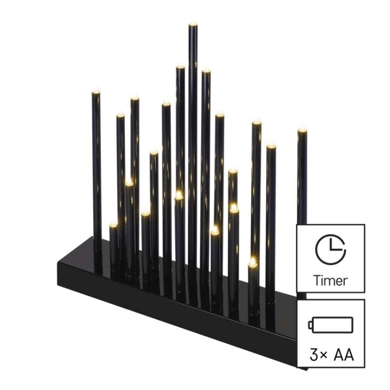 barva drátu: neuvádí se|barva světla: teplá bílá|časovač: ano|dálkový ovladač: ne|délka přívodu: neuvádí se|krytí: IP20|materiál: plast|počet LED: 20|použití: vnitřní|příkon: 1,2 W|prodejní obal: 1 ks, krabice|produkt: svícen|rozměr: 25 × 27,5 cm|typ napájení: baterie 3× AA (není součástí balení)|vstupní napětí: neuvádí se|výstupní napětí: 4,5 V DC|záruční doba: 2 roky|zdroj svícení: LED|životnost: 10 000 hodin